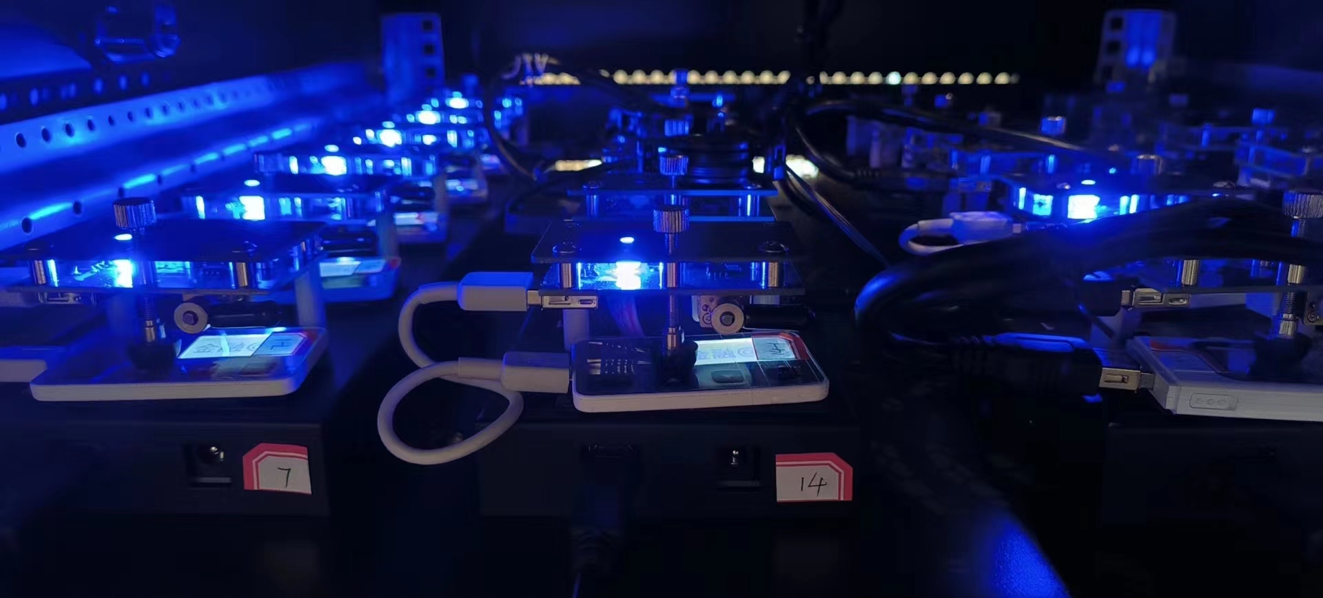 4、一组摇臂点按矩阵有六个按压器,每个按压器有一个USB2.0接入口,每个按压都可以独立控制开断电,独立控制点按设备按压运动。