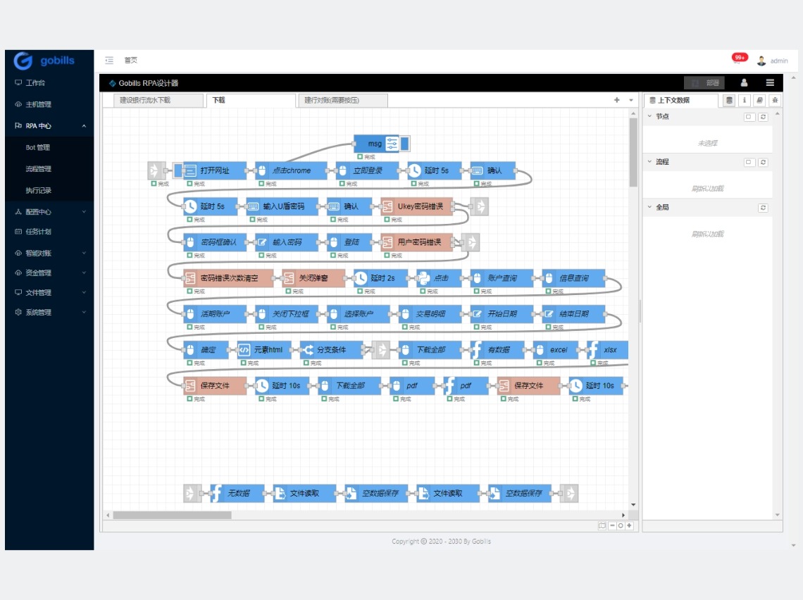 2、参数配置:相关执行参数,例如银行账号、查询时间范围等,可预置也可临时设置,灵活传参,应对不同时候的数据获取需要。